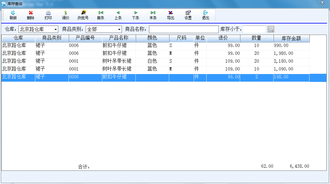 庫存查詢界面,可以根據授權查詢每一個分店的庫存,方便調貨