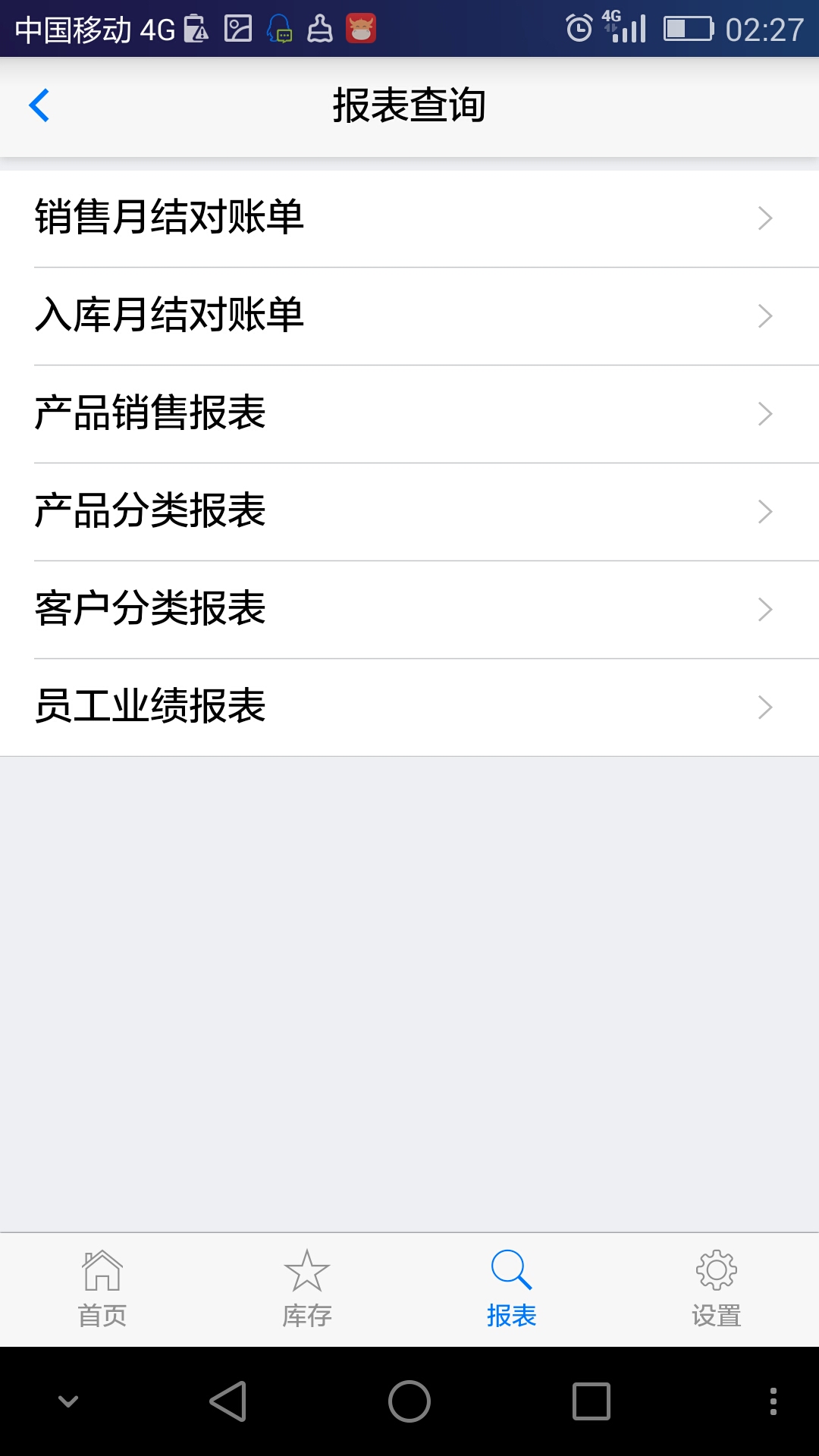 手機端報表查詢界面,可以在手機上實時查詢各種報表